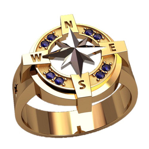 Чоловічий перстень із золота 585 проби з натуральними сапфірами “Навігатор”