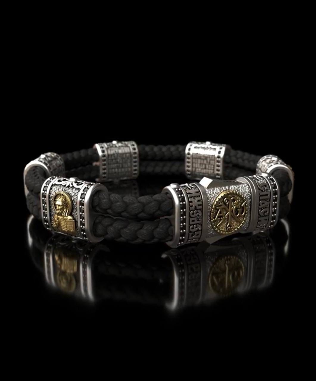 Православний браслет із білого та жовтого золота 585 проби, з повною молитвою «Отче Наш» українською мовою.