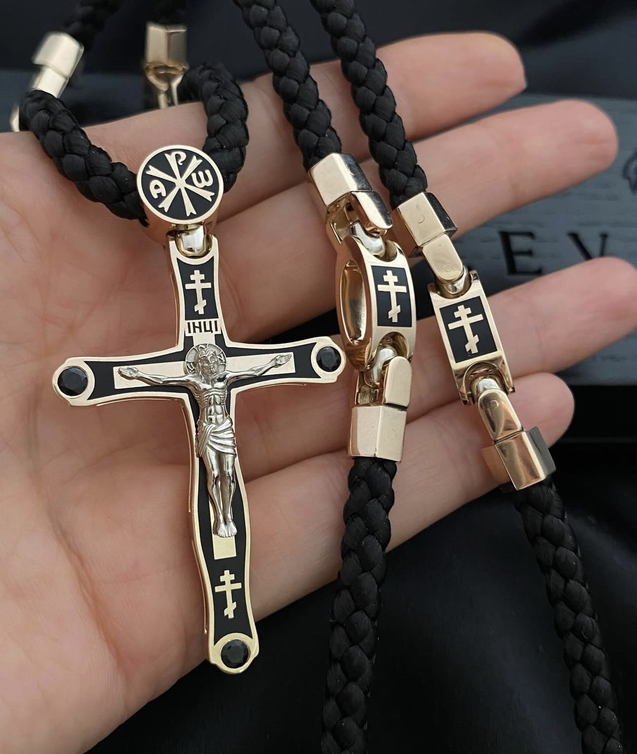 ✔️Червоне та біле золото 585 проби + чорна емаль + каміння Чорні Фіаніти