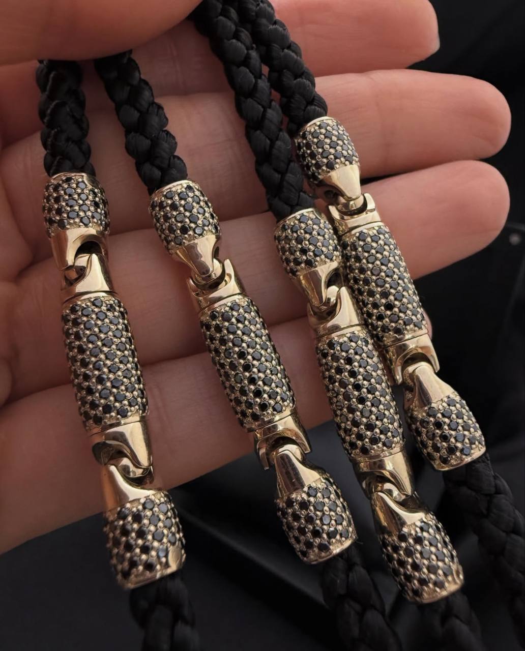 Шовковий шнурок із золотими вставками та чорними діамантами