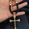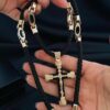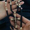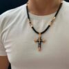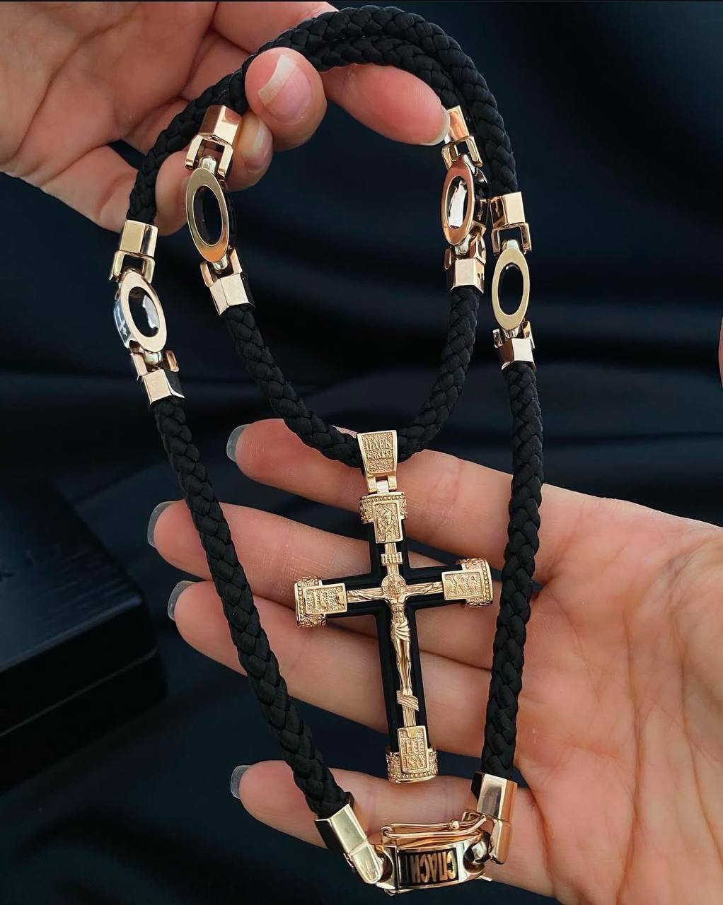 Шовковий шнурок із золотими вставками та золотий хрест із чорним деревом