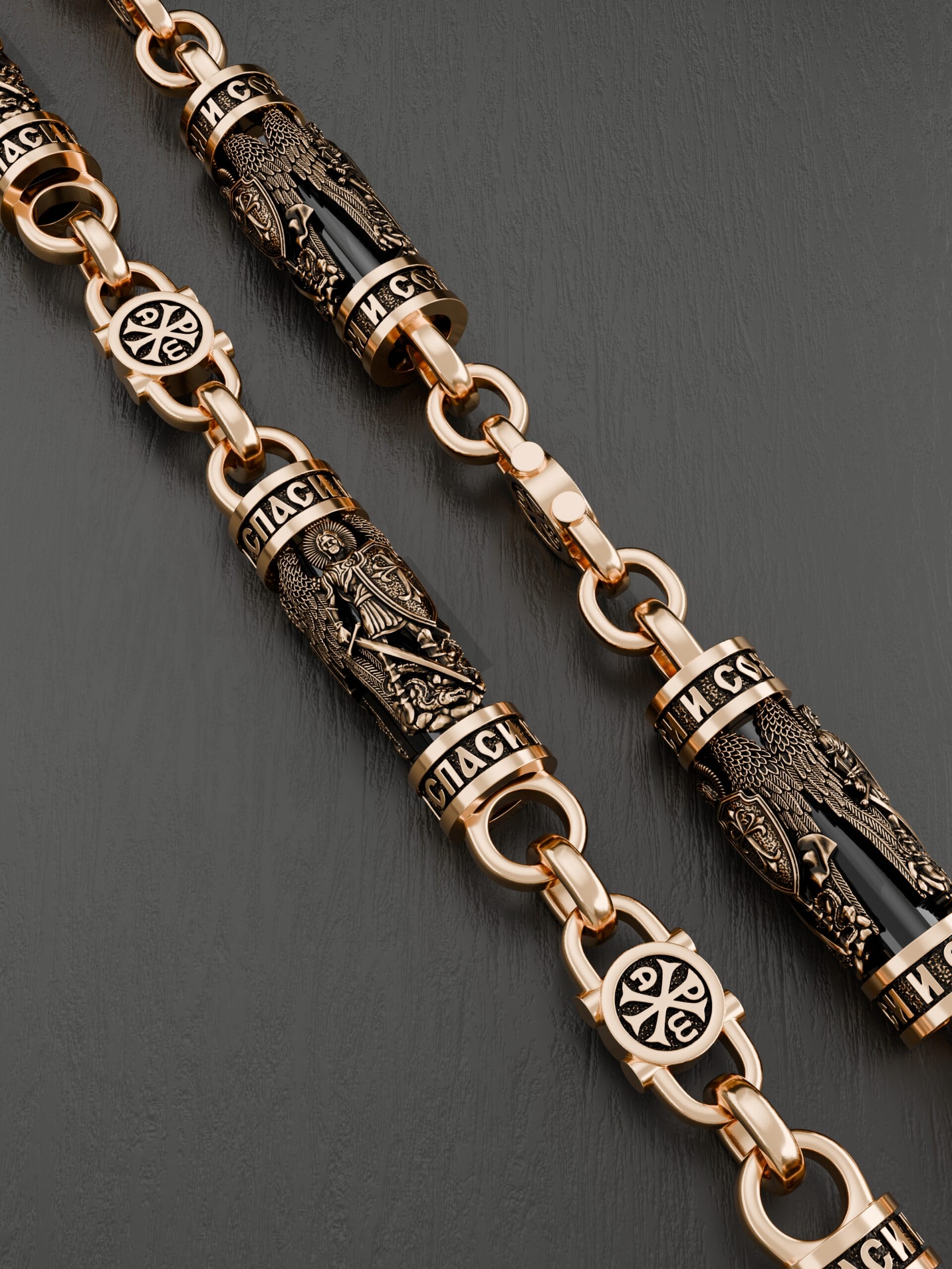 Золотий ланцюжок з Архангелом Михайло та чорним Оніксом.