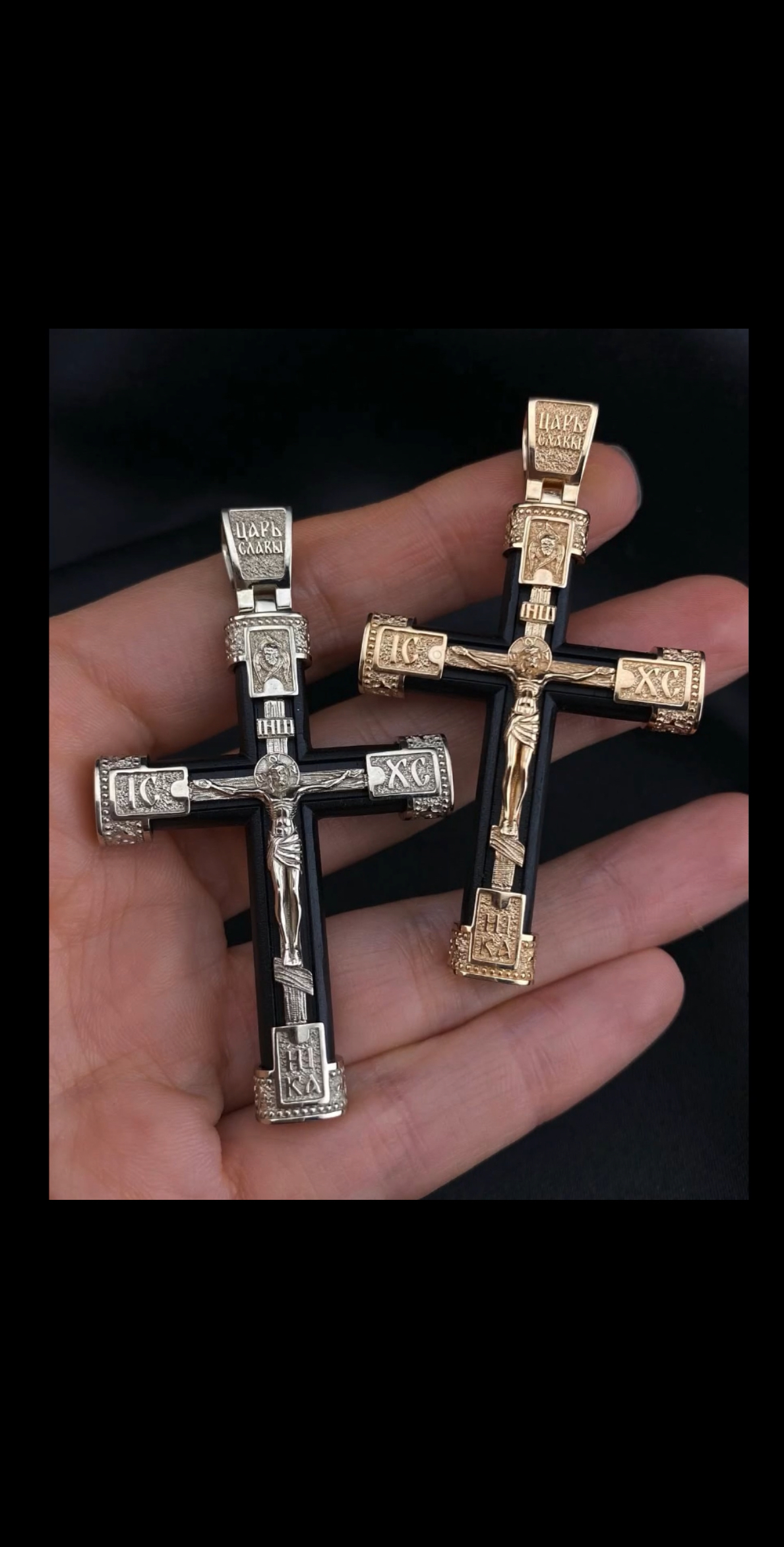 Золотий хрест із чорним деревом. Розмір 59/34 мм (з урахуванням вушка) (1895011228)