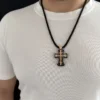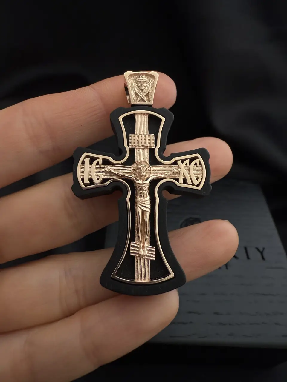 Золотий хрестик. Червоне золото 585 проби + чорне дерево Ебен