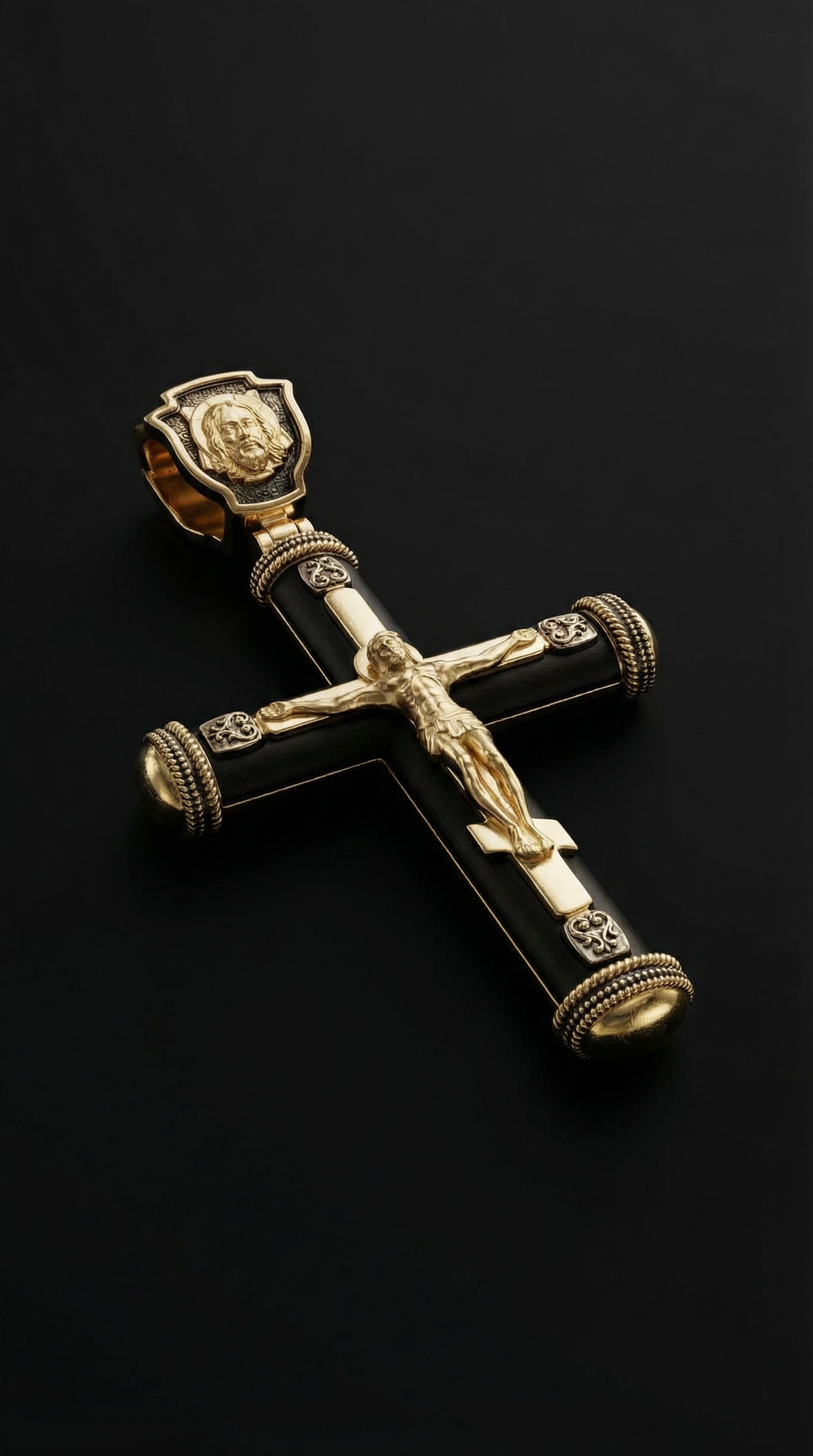 Золотой крест с черным деревом Розмір 65 мм (з урахуванням вушка) (2001999028)