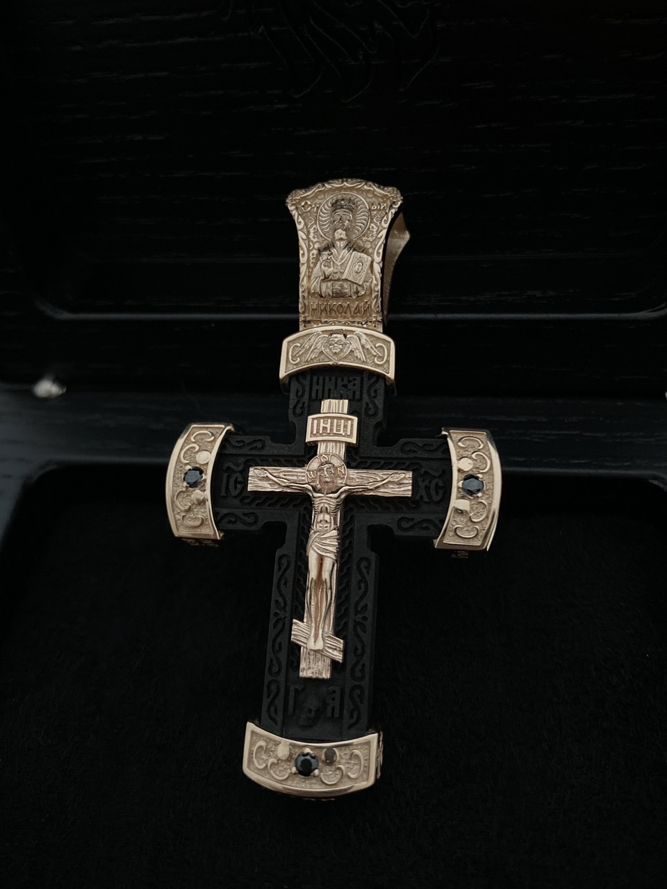 Золотий православний хрест з чорним деревом Розмір 60 на 32 мм Вага 23 грамм