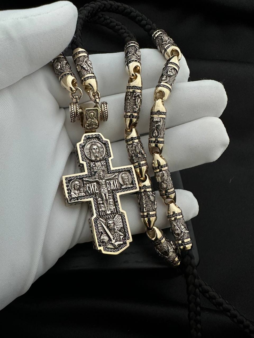 Шелковый шнурок с золотыми вставками.