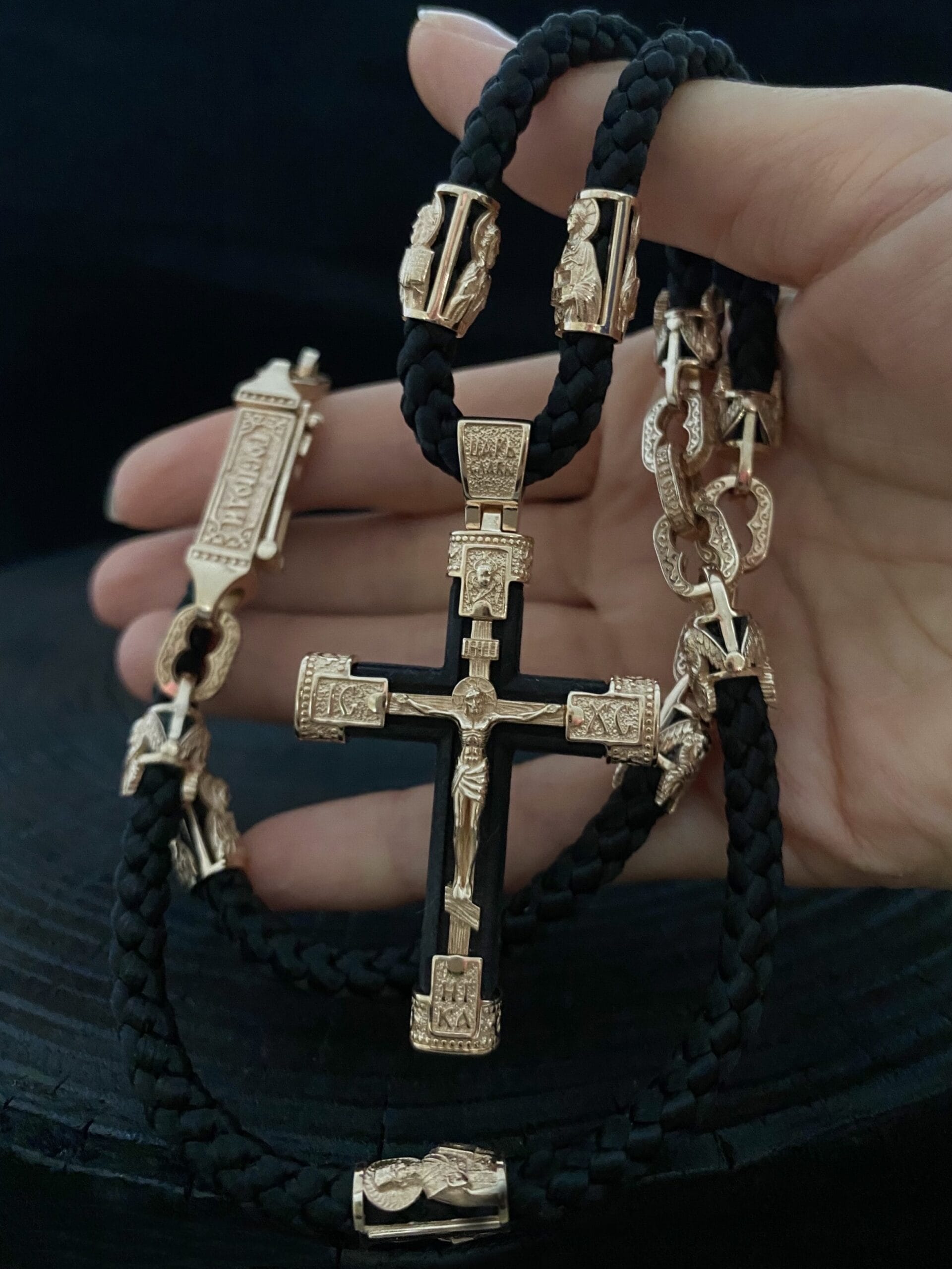 1️. Шовковий шнурок із православними золотими вставками та хрестом.